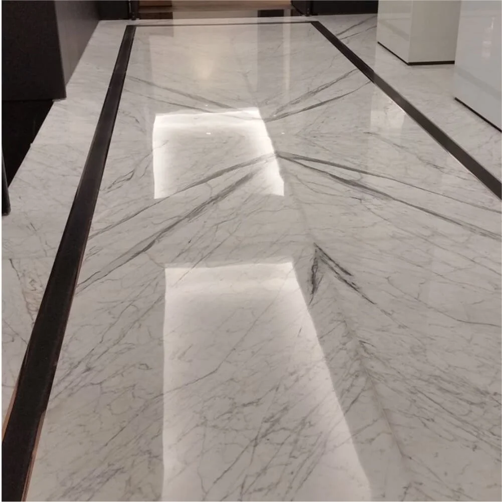 The high gloss finish of marble and other natural stone floors and tops can be achieved using medium to light grade diamond abrasives. Using this process, minor scratches and light stains are removed, while a high natural shine is delivered. By making the surface of the stone less porous and easier to clean, this finish provides strong natural protection.